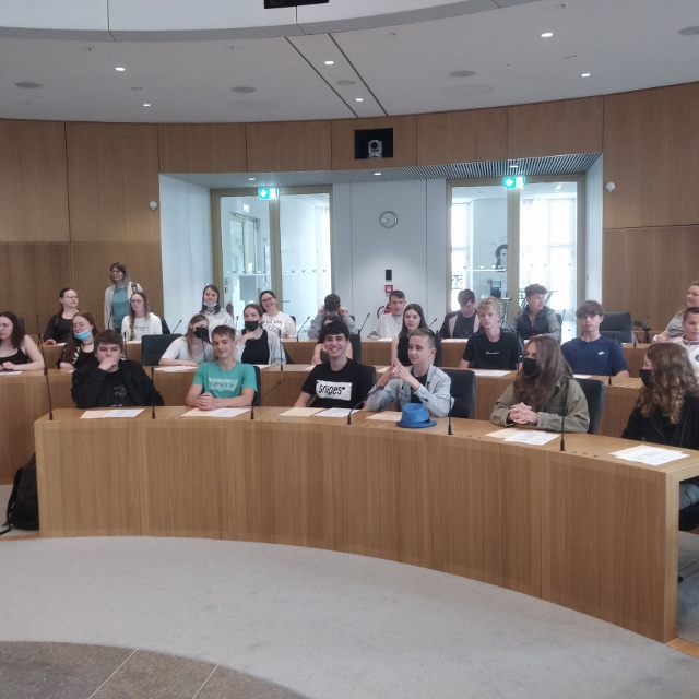 Buswende Große Sporthalle Klassenraumtrakt Kleine Sporthalle Mensa- und Küchentrakt Etwa 4000qm Schulgarten Schulhof, Jobfuxbüro mit Mehrzweckraum Schulhof, Mehrzweckraum Schullogo am Haupteingang Großzügiger Sportplatz Schulschriftzug an der Buswende . 24.05.2022 Demokratietag an der Westerwaldschule Neunzig Schüler und Schülerinnen der 9. Klassen der Sekundarstufe I der Westerwaldschule Gebhardshain erlebten im Rahmen des Demokratietages hautnah, wie die parlamentarische Arbeit der Abgeordneten im Mainzer Landtag funktioniert. Sie nahmen teil an einem Planspiel im Landtag zum Thema „PKW-Führerschein mit 16 Jahren". Das Planspiel ist ein Angebot des Landtages und wird von Honorarkräften gestaltet.Nach einer Einführung zum Thema Parlamentarismus in Deutschland mit einem spezifischen Blick auf den Landtag in Mainz ging die Arbeit der drei Fraktionen los. Die Fraktionen blau, lila und orange wählten ihre Fraktionssprecher, diskutierten in Arbeitsgruppen, bearbeiten verschiedene Informationen, um ihre Argumente für ihre Position zu schärfen und formulierten abschließend einen Antrag für die Debatte im Landtag. Die konstituierende Sitzung des Landtages wurde von der Landtagspräsidentin Ciara Thiel mit großer Souveränität geleitet. Zur Ministerpräsidentin wurde Akasya Yilmaz mit der Mehrheit der Stimmen der Regierungskoalition blau und lila gewählt. Sie ernannte ihre Minister und danach startete die Debatte. Sie war getragen von engagierten Beiträgen. Ein Wechselspiel von Positionen der Regierungskoalition und der Opposition. Nach einer Arbeitspause wurden die Anträge erneut überarbeitet und dem Stand der Diskussion angepasst.Foto: Das "Landtagspräsidium"Nach einer erneuten kurzen Debatte wurden die Anträge zur Abstimmung gebracht. Wie zu erwarten, wurde der Antrag der Opposition abgelehnt und der Antrag der Regierungskoalition angenommen. „Betreutes Fahren ab 16 Jahren soll nun möglich werden. Nach einjähriger Begleitung sollen 17jährige alleine Auto fahren dürfen", so das Ergebnis der Abstimmung. Es ist ein Spiel, aber es spiegelt den Schülern wichtige Erkenntnisse über die parlamentarische Arbeit im Landtag. Zudem erfahren die Schüler sehr viel, wie Politik funktioniert. In der abschließenden Reflexionsrunde waren die Schüler einstimmig der Meinung, dass diese Form des Unterrichtes eine große, nachhaltige Wirkung hat. Evelyn Wall:" Ich habe viel Neues gelernt und erlebt, wie Demokratie funktioniert. Das Diskutieren macht Spaß, ist aber auch sehr anstrengend!"Foto: Die "Regierungskoalition"Foto: Die "Opposition"Foto: "Die Landesregierung"Konrektor Peter Meinung lobte das großartige Engagement der Schüler der Westerwaldschule und ermunterte die Schüler und Schülerinnen, sich engagiert politisch einzubringen. „Demokratie braucht mutige Jugendliche, die Position beziehen, die Veränderungs- und Gestaltungsprozesse mittragen und sich für die Gemeinschaft einsetzen. In den Gemeinden könnt ihr anfangen, politische Erfahrungen zu sammeln und dann könnt ihr versuchen in den Landtag als Abgeordneter zu kommen."Danach hatten die Schüler noch Zeit die Landeshauptstadt Mainz, in der noch überall die Nachwirkungen des Rheinland-Pfalztages zu sehen waren, mit ihren vielfältigen Sehenswürdigkeiten kennen zu lernen. Zentrale Magneten waren der Mainzer Dom und der Marktplatz, aber auch der Schillerplatz mit Fastnachtsbrunnen wurde besucht. Zum Abschluss gab es einen Bummel an der Rheinpromenade.