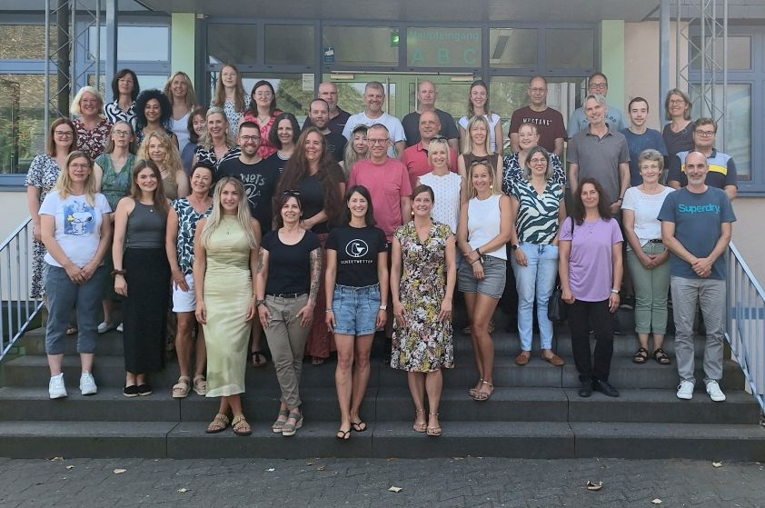 . 31.08.2025 Kollegium der Westerwaldschule Gebhardshain (2025/26) Kollegium der Westerwaldschule Gebhardshain, August 2025Klasse 5a: Fr. BenderKlasse 5b: Hr. Zöller, Fr. UngerKlasse 5c: Fr. Hutter, Fr. SeibertKlasse 6a: Fr. Wollenweber-Eckstäft, Fr. SchillingKlasse 6b: Fr. Diop, Hr. KärcherKlasse 6c: Fr. MertensKlasse 6d: Fr. Weib, Fr. MackKlasse 7a: Fr. BenöhrKlasse 7b: Hr. SauerKlasse 7c: Hr. RufKlasse 7d: Hr. FüllenbachKlasse 8a: Fr. Gilles-SchweitzerKlasse 8b: Fr. HollKlasse 8c: Fr. StockschläderKlasse 8d: Hr. SpiesKlasse 8e: Y. SpenglerKlasse 9a: Fr. BayerKlasse 9b: Fr. KramerKlasse 9c: Fr. Kaiser-SchiermannKlasse 9d: Fr. SchneiderKlasse 9e: Hr. GockelKlasse 10a: Fr. NeugebauerKlasse 10b: Fr. LauxKlasse 10c: Fr. GroßDarüber hinaus unterrichten an unserer Schule folgende Lehrkräfte: Nilüfer Barlas, Elisabeth Berwanger, Margarete Benner, Thomas Hecken, Alina Jabs, Roland Jakubowski (päd. Koordinator), Anna Maria Kostka, Janina Lindner, Jennifer Neufeld (Did. Koordinatorin, Elternzeit), Nina Müller, Isabel Nelke, Jasmin Ruf (zweite Konrektorin), Elisabeth Siefert, Stefan Schiermann, Karsten Schneider, Elisa Solbach und Ralph Meutsch (Schulleiter).Die Westerwaldschule besuchen im August 2025 insgesamt 597 Schülerinnen und Schüler.